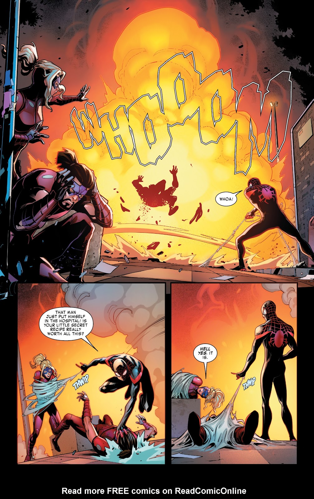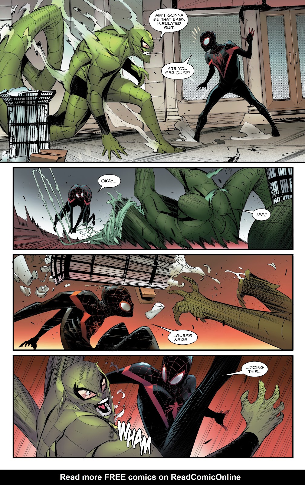 Beyond that wall of text and into factors other than stats, Static still has an edge. He’s a lot more versatile and his abilities cover a wide degree of options for him. For example, he can boost his defence with forcefield creation, while simultaneously attacking with electric shocks and manipulated metal constructs, while Miles is mainly stuck with offensive options. Speaking of, Static’s influence over metal gives him a distinct advantage in terms of battlefield control. He can change the terrain to whatever he wants, and essentially dictate Miles’s options for maneuvering and where to go, which is a pretty notable thing when stats are close like this. In comparison, Miles has no such ways of reliably changing Static’s options like that. Plus, Static is also a lot more mobile. In general, he likes to attack from a distance while flying on his saucer, so Miles is gonna have to get in close if he wants to do some serious damage with his physical blows. After all, his webbing can run out, and Static should be quick enough to dodge it anyways. Miles is limited to just web swinging and wall crawling here, which is significantly less advantageous than Static’s free-form flight. That’s not to say Miles doesn’t have some useful skills of his own, but in general they’re not quite as useful. His invisibility is essentially completely countered by Static being able to sense people’s auras, his webbing is on a limited supply and likely won’t do much to Static in the first place, and even his spider-sense isn’t anything Static hasn’t dealt with before. After all, he’s outmatched Ravager in the New 52, who has straight-up precognition. Wall clinging isn’t much of a help here either. It’s been stated to work based on bio-electrical forces, which Static has control over. Given that, he should just be able to completely disable Miles’s wall-crawling, which leaves him even more of a sitting duck, especially if his webbing runs out. The venom shock is all Miles really has left, and it definitely provides his most solid path to victory. It’s been shown to work on similarly electricity immune people such as Ultimate Electro before, and Static himself has been harmed by electricity on different occasions. If Miles does land it, then he should be more than capable of doing enough damage while Static is out cold to take the win. The main trouble is landing it in the first place. Again, Miles is notably less mobile than Static here, and the venom shock only works up-close. Static can disable Miles’s wall-crawling and force him to run out of webbing, either by stalling or crushing the metal in his web-shooters, at which point Miles doesn’t have a solid way of hitting Static with the “Hey” while Static can just blast him with electricity from a distance. Even his energy threads aren’t of much benefit. They’re still unlikely to hit Static, are far less reliable for movement than his standard webbing, and it’s unclear if he can even use them to swing that well given how light they are and the fact that they’re more used to tie up foes rather than for verticality. With that in mind, Miles’s main hope for a win here becomes pretty unlikely.